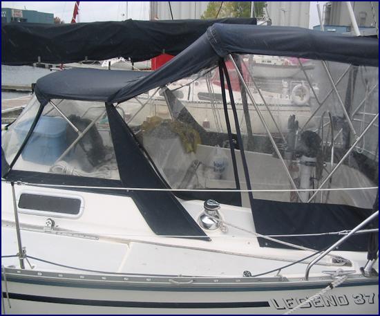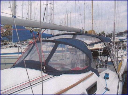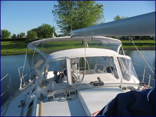 Partie reliant le Dodger au Bimini. Offert au choix, en tissu ou en Plastique transparent.